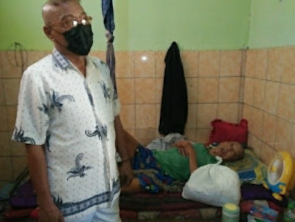 Meski terbaring lemah semenjak menderita kelumpuhan 3 tahun lalu, pria tua yang sebelumnya banyak menghabisi waktunya menjadi petugas Marbot di salah satu masjid di Perumnas Gunung Ibul ini terpaksa memilih tinggal menempati salah satu ruangan bekas bangunan MCK Umum, yang berada tepat di samping rumah anaknya.