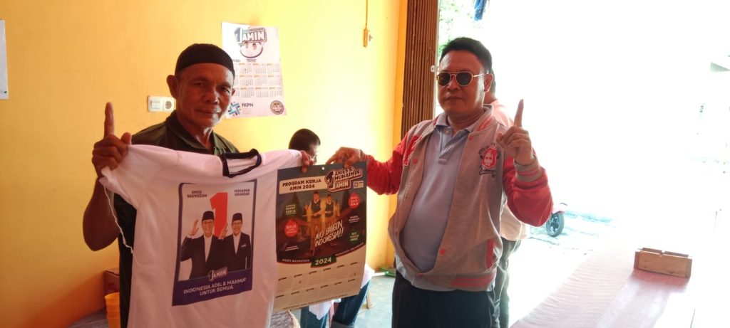 PRABUMULIH – Tim Relawan Bakorsi (Badan Koordinasi Saksi) Pemenangan Amin (Anis – Muhaimin) di Prabumulih, Jumat siang, (12/1/2024), kembali membagikan kaos dan kalender Amin ke warga.