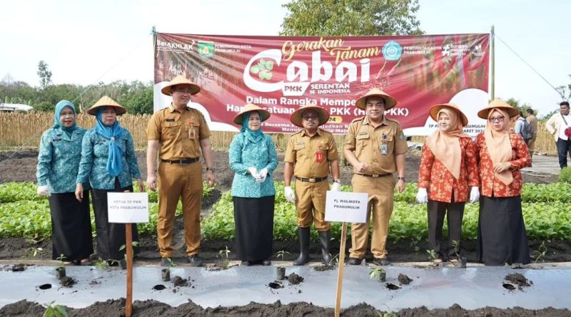 Prabumulih, Gemasab Pos. Id.  – Penjabat Walikota Prabumilih dalam hal ini diwakili oleh Staf Ahli Walikota Bidang Ekonomi dan Pembangunan Mulyadi Karoman, S.Pd.,M.Si didampingi Penjabat Ketua Tim Penggerak PKK Kota Prabumulih Hj. Windriana Elman beserta jajaran anggota TP PKK dan DW Kota Prabumulih dan OPD terkait di lingkup Pemerintah Kota Prabumulih, perwakilan masyarakat mulai dari KWT, Poktan hingga Gapoktan mengikuti Gerakan Tanam Cabai Serentak Se-Indonesia pada Peringatan Hari Kesatuan Gerak PKK Ke-52 secara virtual, di Pokdakan Usaha Mina Kelurahan Cambai, Senin (04/03/2024). Gerakan Tanam Cabai serentak se-Indonesia itu, diselenggarakan serentak oleh TP PKK Pusat, diikuti TP PKK provinsi/kabupaten/kota di seluruh Indonesia pada hari ini, Senin (04/03/2024).