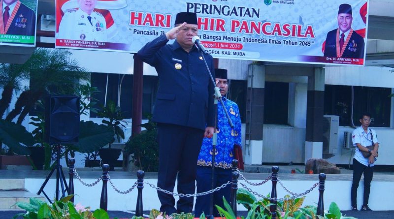 Upacara yang dipimpin oleh Pj Bupati Muba H Sandi Fahlepi selaku Pembina, Upacara tersebut mengambil tema “Pancasila Jiwa Pemersatu Bangsa Menuju Indonesia Emas 2045”. Turut hadir dalam pelaksanaan upacara Forkopimda Kabupaten Muba, Sekretaris Daerah Kabupaten Muba H Apriyadi, Para Asisten dan Para Staf Ahli Bupati, Aparatur Sipil Negara (ASN) di lingkungan Pemkab Muba berserta Kepala Perangkat Daerah Kabupaten Muba.