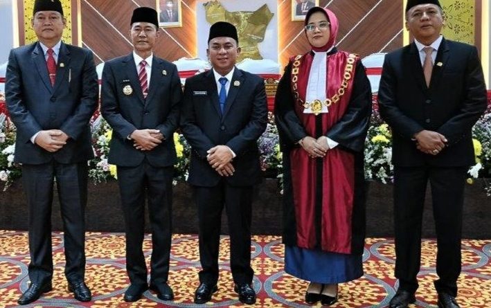 Adapun Pimpinan yang mengucap sumpah dan janji tersebut masing-masing yakni: Ketua DPRD H Deni Victoria SH MSi, Wakil Ketua I DPRD Aryono, dan Wakil Ketua II DPRD Ir Dipe Anom.