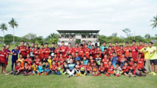 LUBUKLINGGAU, GEMASAB POS. Id. – Sang Kapten kesebelasan bersama rombongan Persipra AllStar Kota Prabumulih unjuk skill di lapangan Hijau, Lapangan